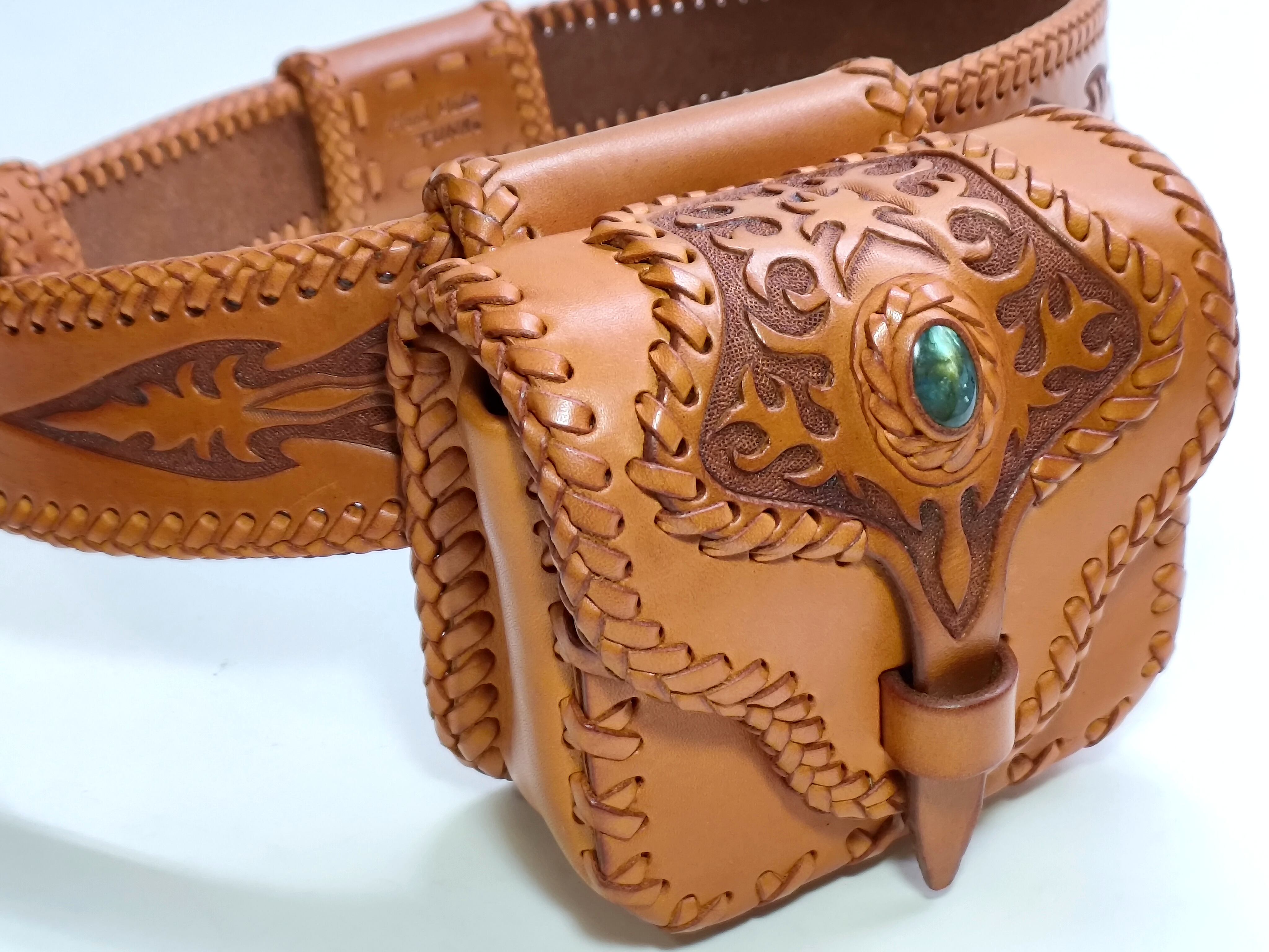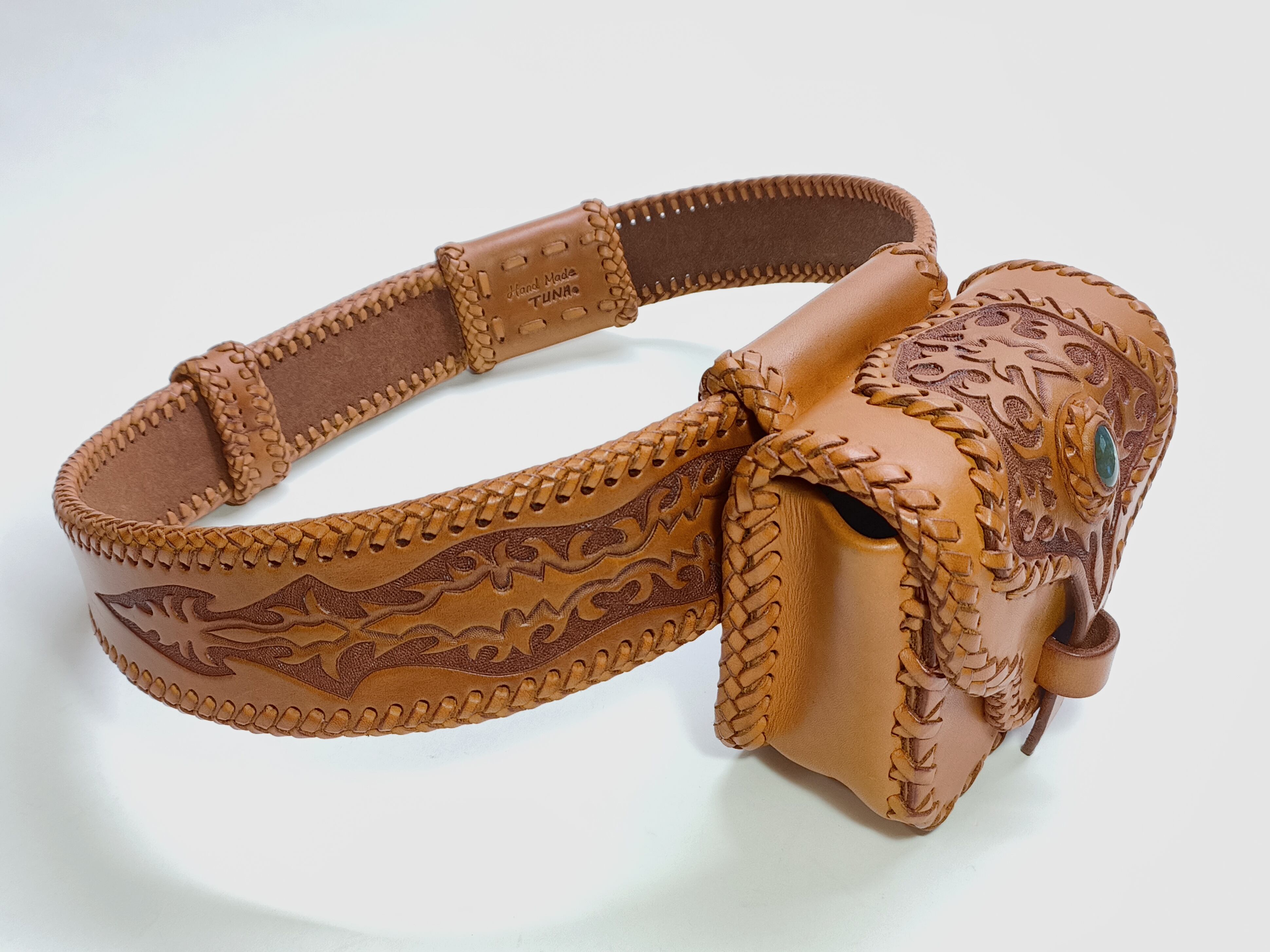 素材:天然牛革(タン) 石:ラブラドライト