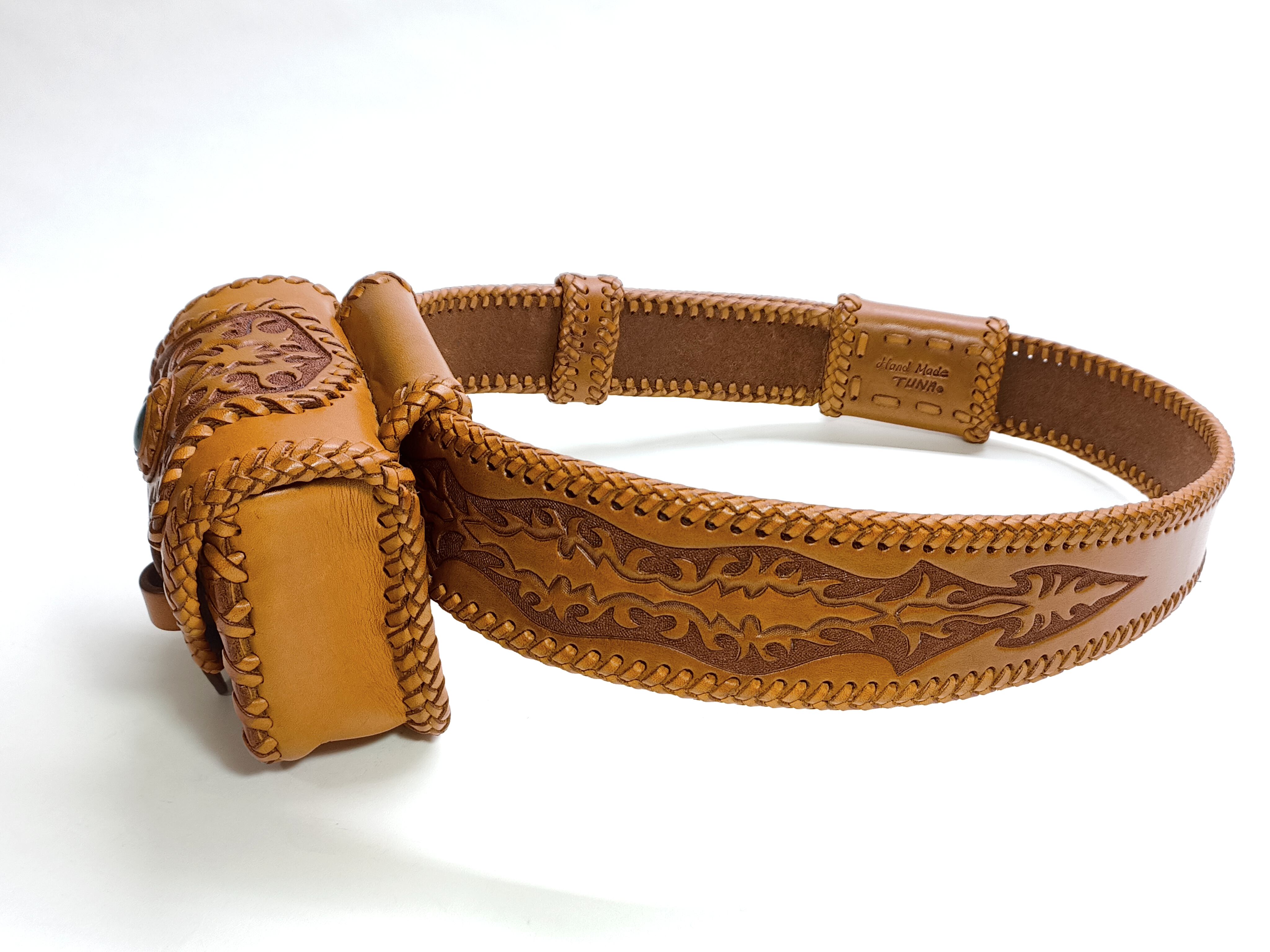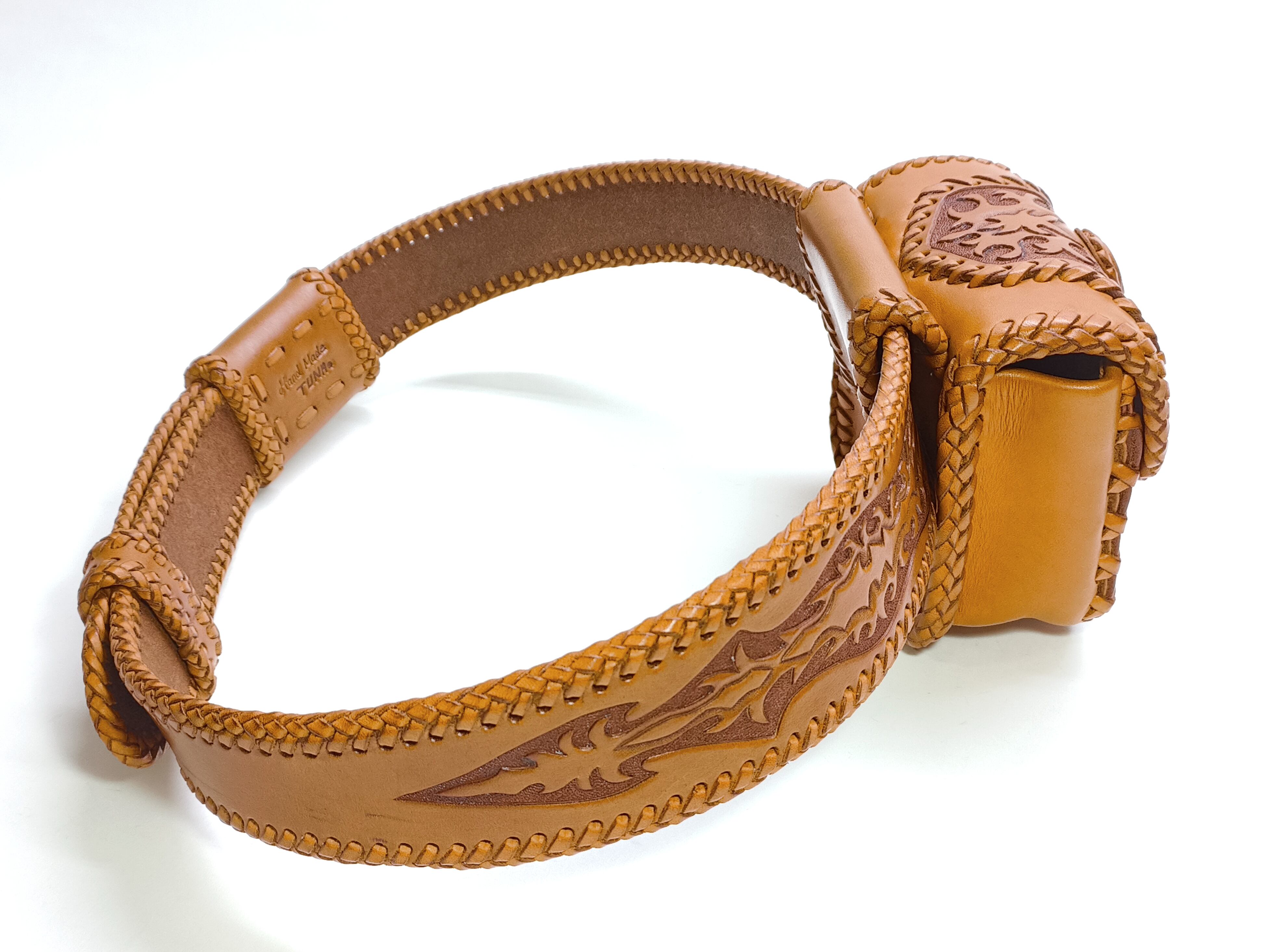 こちらのベルトバッグは2000年頃に作った作品の一つで、全体的に状態良く保存された物です。展示品として使用されていたため、色の変化、金属パーツ部分に少しな色の変化がございます。ご理解の上ご購入ください。